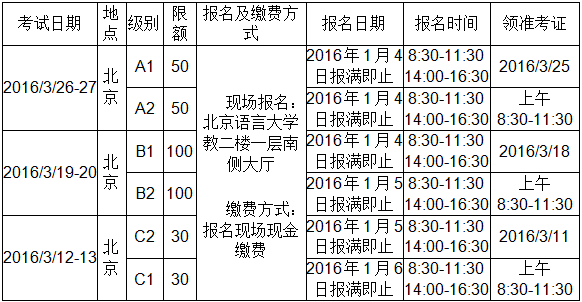 2016年3月DELF/DALF法語考試北京語言大學考試中心考點補充報名定于2016年1月15日16日兩天上午9點至下午4點(中間不休息,并且報滿截止)報名方式和地點不變。