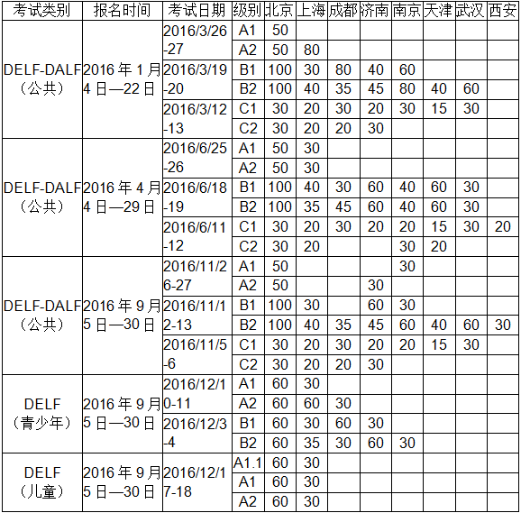2016年法國(guó)DELF/DALF考試時(shí)間及地點(diǎn)安排