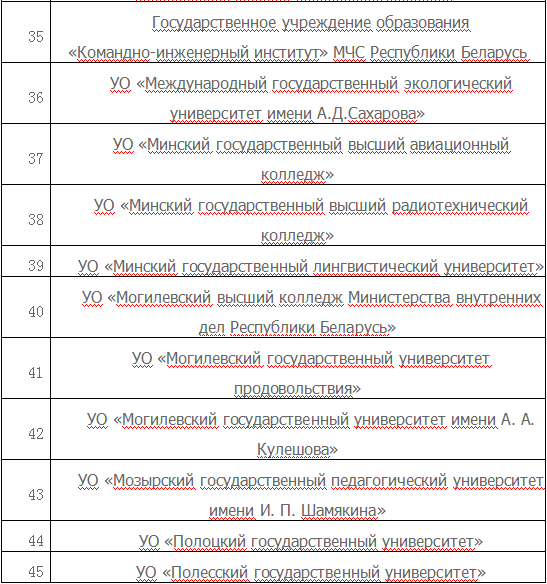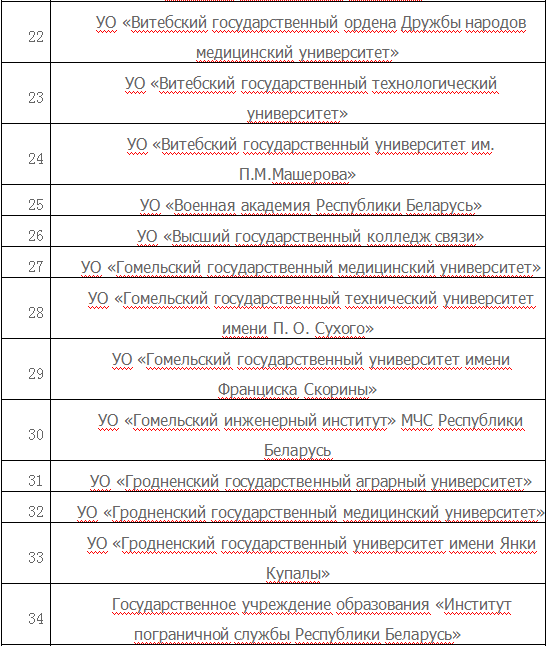 白俄羅斯全國(guó)有45所國(guó)立和10所私立高等教育機(jī)構(gòu),按照15個(gè)學(xué)科培養(yǎng)專(zhuān)業(yè)人才。白俄羅斯高等教育包括以下兩個(gè)階段: