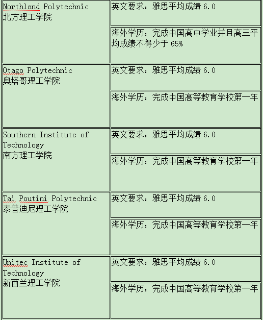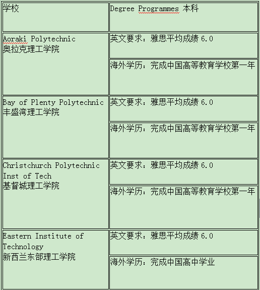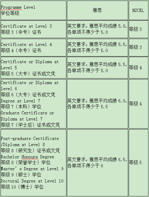 私立高校的入學要求參考新西蘭教育部各專業(yè)等級入學英文要求