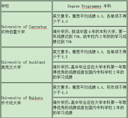 重要說明:以下入學標準,僅針對從中國境內(nèi)直接申請入讀新西蘭本科的學生,如果通過預科課程或者橋梁課程入讀擇不受此限制。