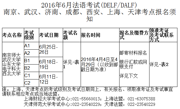 2016年法國(guó)DELF/DALF考試時(shí)間及地點(diǎn)安排