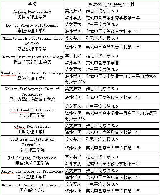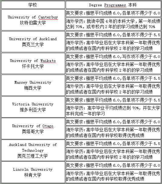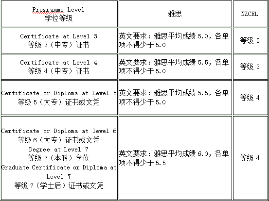 私立高校的入學要求參考新西蘭教育部各專業(yè)等級入學英文要求