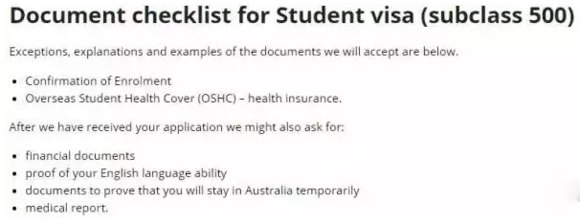 申請(qǐng)時(shí)必須提交的材料只有學(xué)校出具的學(xué)費(fèi)證明(COE)和留學(xué)生保險(xiǎn)證明(OSHC)