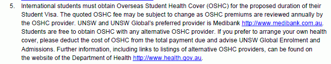 二. 在我們的offer里就有OSHC的提示,如下圖所示
