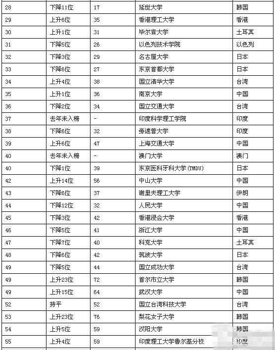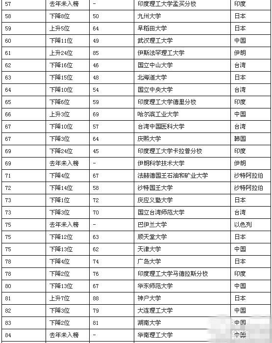 《泰晤士高等教育》2015年亞洲名校Top100排行榜