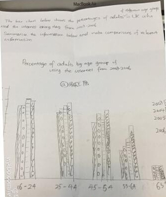 Task1: The bar chart below shows percentage of adults of different age groups in the UK who used the internet every day from 2003 to 2006.